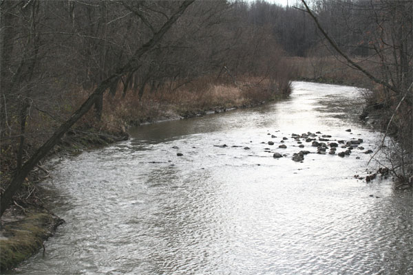 Today is a day off for me since I worked Saturday and Sunday last weekend. I ran errands midday: to the Post Office, recycle center, heating/cooling supply shop for filters, Taco Bell for lunch, and Staples for the heck of it. Along the way I stopped by the Mill Stream Reservation of Cleveland Metroparks in Strongsville, Ohio. The land there is a large wildlife preserve with a tiny parking lot and observation blind at one end — it's good to see the wetland set aside for wildlife. The chilly wind was whipping up, stinging my ears and bare hands as I held my camera for a few shots. Overhead I heard the call of a single chickadee and later the screech of an unseen hawk. Aside from a couple groups of mallard ducks bobbing about in the stream and on the ice-skinned pond, the woods and waters were largely quiet. Winter is setting in.