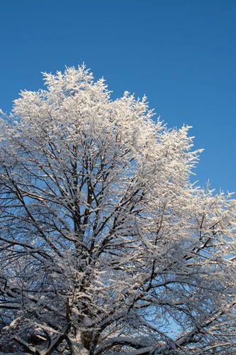 Saturday was spent in travels both on errands and for the enjoyment of being out of doors on a fine winter's day. It really didn't start out quite so fine –it was gray and snowy– but as the day progressed, things changed. The clouds grew thinner and gave way to peeks of blue and by the end of the day, the sky was cloud free with the sun illuminating nature's recently-decorated landscapes.