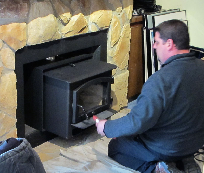 Most times we really enjoy our electric heat pump. It does a good job of heating and cooling our little old condominium, requires little maintenance, and seems to cost less than heating with gas. But (you knew that was coming) there are times when it just can’t cut it. When the outside air temperature falls much below 19 degrees (F), the heat pump and its auxiliary “electric furnace” can barely keep up. When the temperatures fall closer to zero, we lose ground and the house grows colder. Electric space heaters help but can’t (shouldn’t) be left unattended. The fireplace works but requires regular attention and can’t be left unwatched and can actually result in net heat loss due to the need for leaving the damper open. She Who Must Be Obeyed froze in the house last year and decided something must be done — we would purchase a word stove insert and make a permanent conversion of the fireplace.