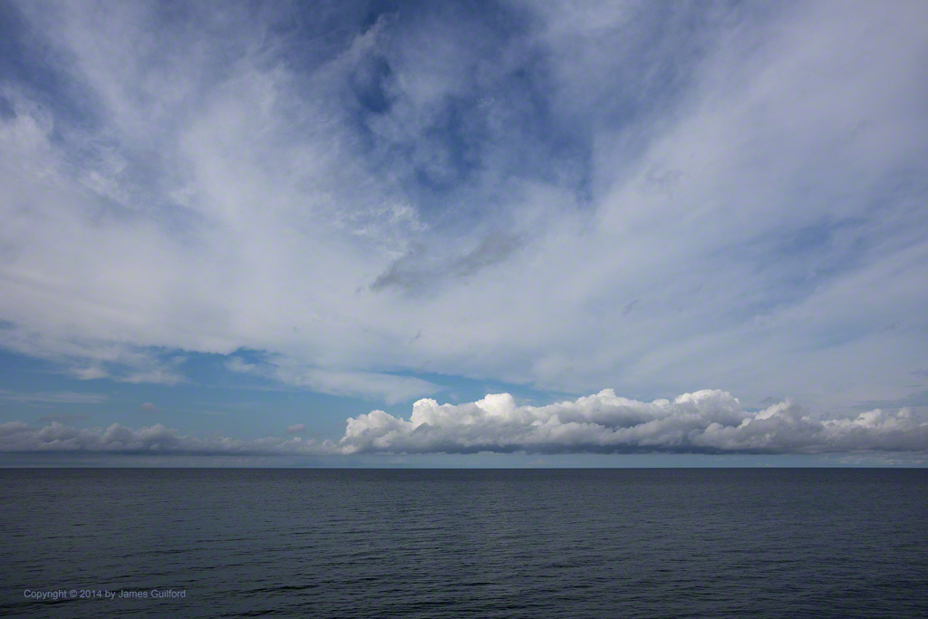 As I was beginning my trip inland, I glanced across the lake: there, in a clearing sky, was a train of pretty cumulus clouds. Often, for picture taking, I like stormy weather.