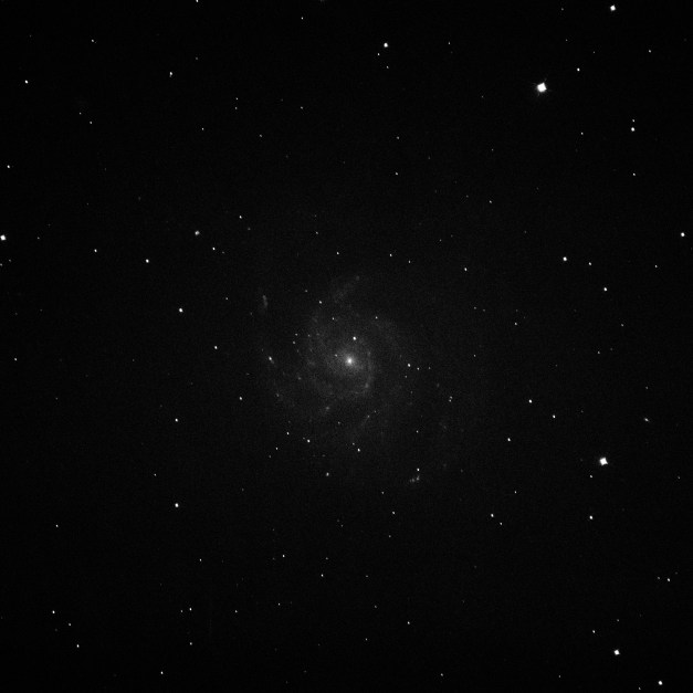 One of my favorites, Messier 82, showed faintly in an image (also not shown here) and was invisible to the eye on account of light pollution. The pairing of M81 and M82 is one of my favorite galactic sights though a telescope; I’m going to need better skies or a different location to see them again!