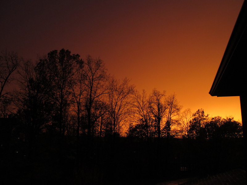 Following the afternoon passage of a squall line, the sunset colored the western sky a vivid orange. Yes, it really was this color! Photo by James Guilford.