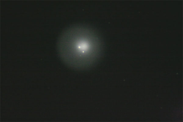 A formerly very dim comet called Holmes (17P) flared up October 24th growing many magnitudes brighter. It's currently outside the orbit of Mars and in the southern portion of the constellation Perseus. Last night, following a day of clouds, mist, and rain, I stepped outside to a clearing sky. It took me only a second to find Holmes and view it through my 10X50 binoculars. It was a beautiful sight, though to the uninitiated, it's just a big fuzzball. That is, of course, how it looked… a large, brightly glowing puff with a bright dot in the center — how comets look "head-on" with any tail streaming behind and away from the viewer. The glow was slightly yellow or golden… quite an unusual object. Nobody's sure how long the flareup will last –heck, it was totally unexpected– but it's got the astronomical community all excited which, by itself, has been a lot of fun. For the record, Comet 17P was serendipitously discovered by Edwin Holmes back in 1892. He had been observing Jupiter and some double stars when he happened across "his" comet when aiming his 32-cm (12.6-inch) reflector towards the Andromeda Galaxy (or "nebula," back then) to finish up for the night. So his surprise then is a surprise and delight to us today.