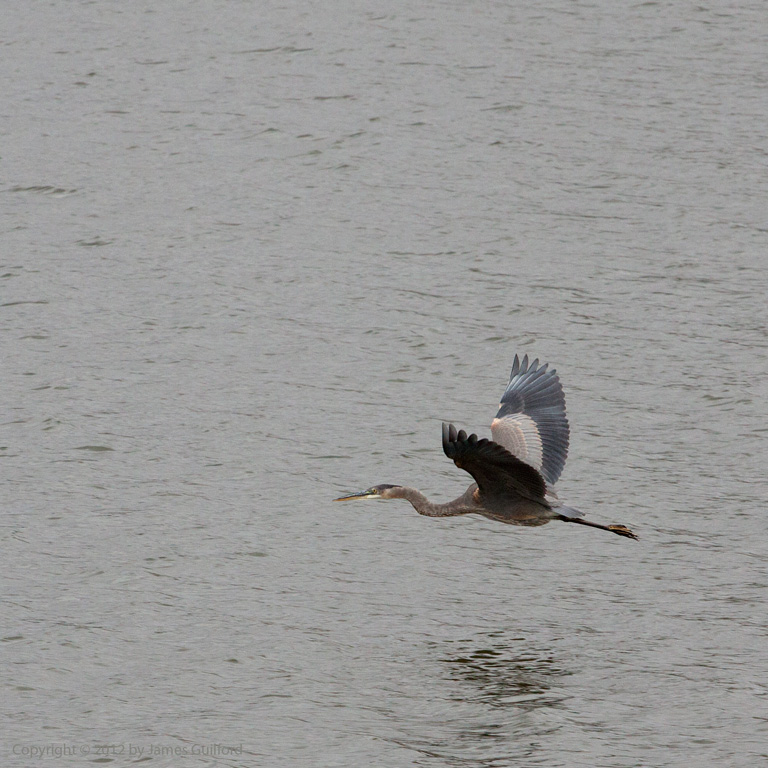 Skittish Great Blue Heron as seen from the reservoir wall.