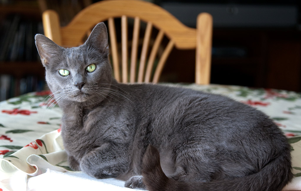 Just a quick post to record the results of Tasha’s exam and blood test from last Friday. The test was the final post-procedure followup for Tasha regarding her Iodine-131 treatment for hyperthyroidism. Our cat weighed in at a healthy 8.4 pounds, her longstanding tummy troubles (once diagnosed as inflammatory bowel disease) seem to have ended, her oral health appears better, and her coat is full and thick as it once was. Her thyroid hormone level tested at 2.7 with the normal range being 1.9 to 4.8 — excellent! Dr. B., phoning us with the blood results, said “Tasha’s hunky-dory!” We agree.