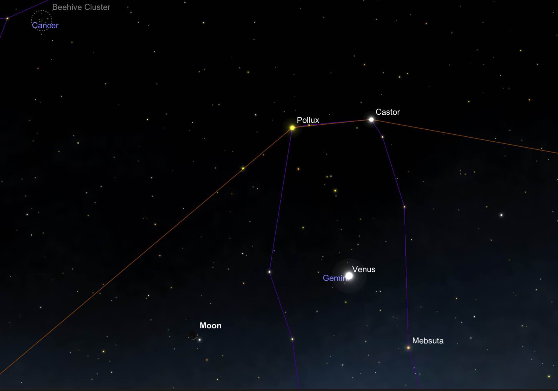 To end my night at Letha House Park, I took flashlight in hand and, with camera now mounted to a tripod and camera lens installed, hiked down to the edge of the park’s lake. Reflected in the still waters was brilliant Venus, close to the horizon, about to set; the stars of Gemini floating above the Goddess of Beauty. I made several hurried exposures of the lake scene and returned to my telescope.