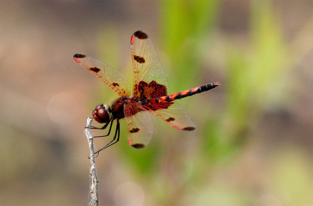 We stopped many times along the way to photograph plants, flowers, and wildlife including a very cooperative Green Frog and red dragonfly (Ruby Meadowhawk?), residents of a tiny pond area. The trail is mostly asphalt paved with an extensive system of wooden boardwalks and bridges to carry visitors over wet areas.