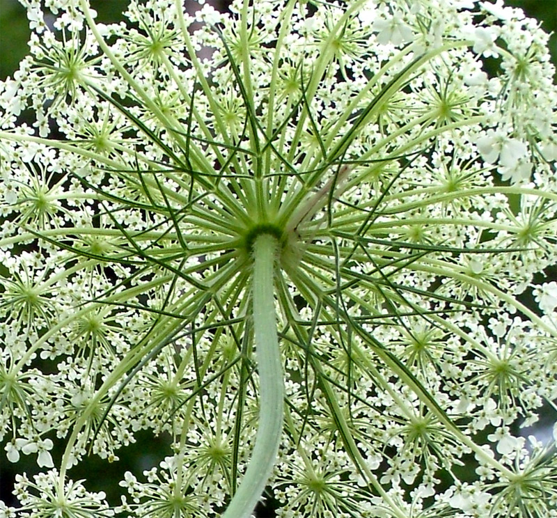 In a meadow area many taller plants densely grew. Queen Anne's lace grew so tall I barely had to bend to photograph the undersides of some flower heads.