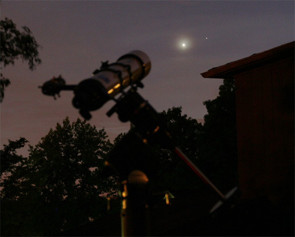 As luck would have it –this always seems to happen– clouds began to roll in at about the time it got dark enough to spot Saturn. We all got at least one glimpse of the ringed world before solid overcast moved in and shut us down. I was allowed, and requested, to run the R.A. slow-motion control to center up Saturn before clouds could obscure it. That would allow some lead time should another opening appear in the cloud deck (and one or two did) whilst the telescope was tracking. The telescope is the largest refractor I've ever used and it moved smoothly and easily with the turn of a knob. I got one good, brief look at Saturn but that second or two hinted at how good the telescope is: I glimpsed at least three of Saturn's moons, some banding in the planetary body, and my first look at the Cassini Division — the dark separation in the ring system. And that was on a night of poor seeing!