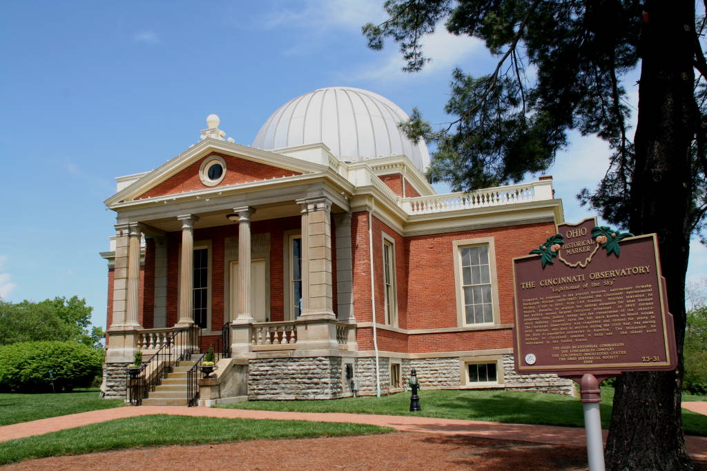 The day of presentations seemed to go on forever at the Antique Telescope Society's workshop. There was really good content but way too many hours of it. So I got up and walked out of the classroom –the former meridian transit room of the observatory– or shifted in my seat. Often. At times rain poured down in sheets as we heard discussions of the viability and survivability of "Vintage Observatories" in the 21st century. Don't get me wrong… the presentations were both interesting and informative. My bottom still got sore from all the sitting, though. Fortunately the sky began to clear off in the late morning hours and many of us enjoyed strolling around the grounds of the Cincinnati Observatory Center. I shot many photos both indoors and outdoors showing various views of the main observatory building and the smaller Mitchel Building on Mt. Lookout. After dinner I listened impatiently to presenters but was really anticipating sunset and a chance to look through the grand 16-inch Alvan Clark & Sons telescope, showpiece of the Center.