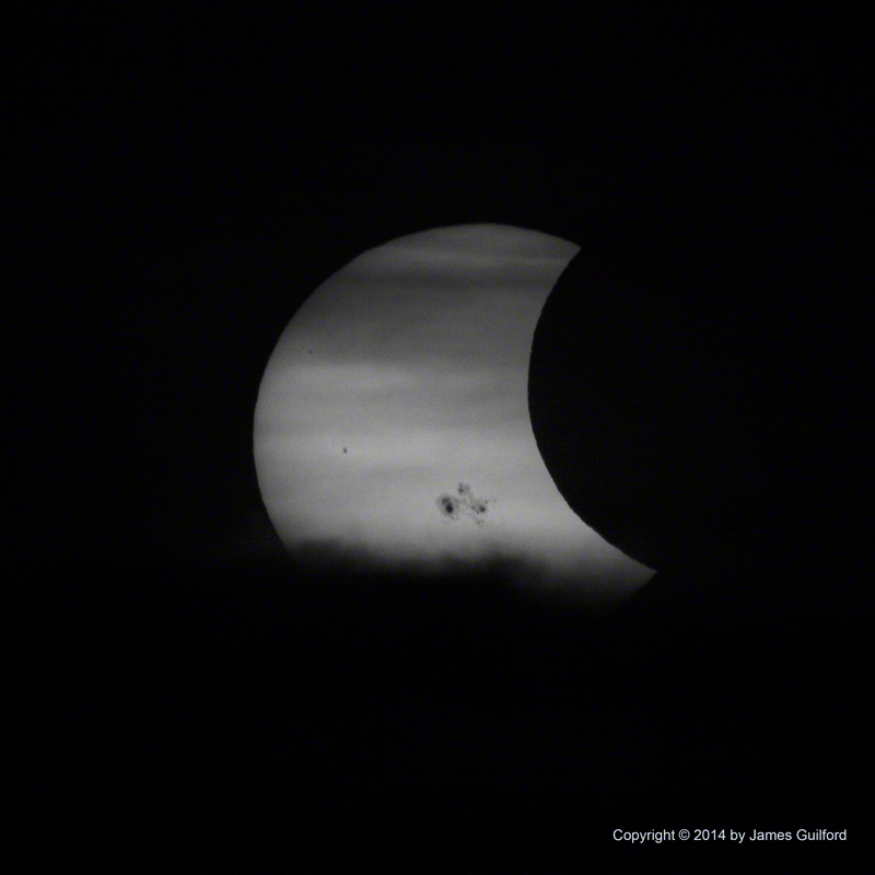 While I had hoped and planned for a sky clear enough to enjoy an expansive view of the solar corona, the aforementioned thin cloud cover successfully masked the delicate outer corona leaving only the brilliant inner level accessible. At first I was disappointed but was consoled by my images of prominences — something I did not expect to record in such detail — and that was rewarding indeed!