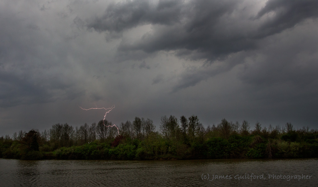 The approaching squall line promised opportunities for lightning photography. This was my only half-way decent shot of the night.